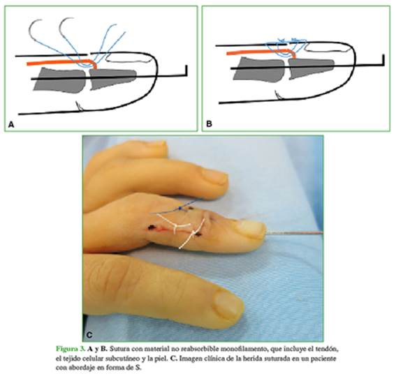 serie de niños y adolescentes con lesiones de dedo en martillo tendinoso de