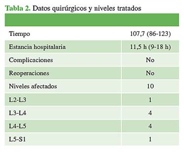 descomprimieron 10 segmentos (2,5 media de niveles por paciente), con un tiempo