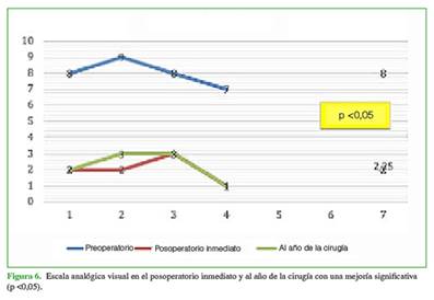 fueron evaluados antes de la cirugía, a los 30 días y al año de la operación