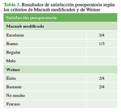 usando la escala de Weiner y los criterios de Macnab modificados.