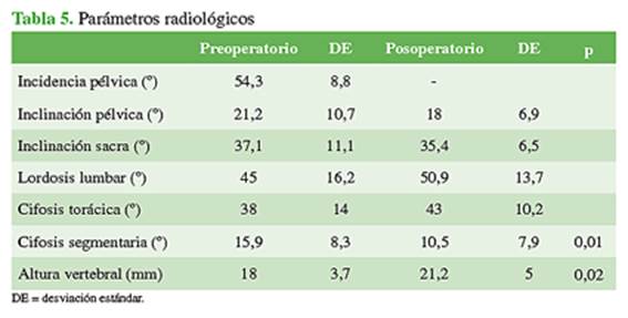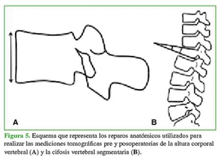corrigió a 10° (p = 0,01). La altura promedio de la vértebra comprometida fue