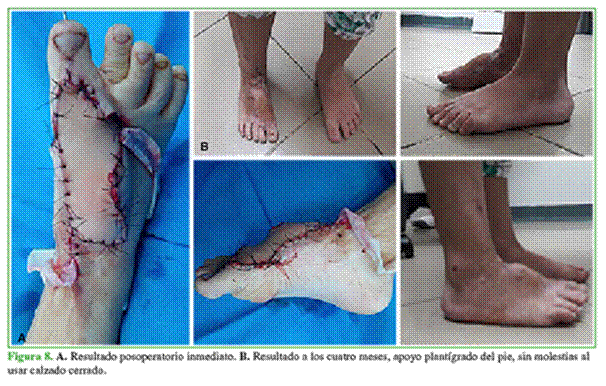 reconstrucción de secuelas traumáticas de la mano y el dorso del pie, y un