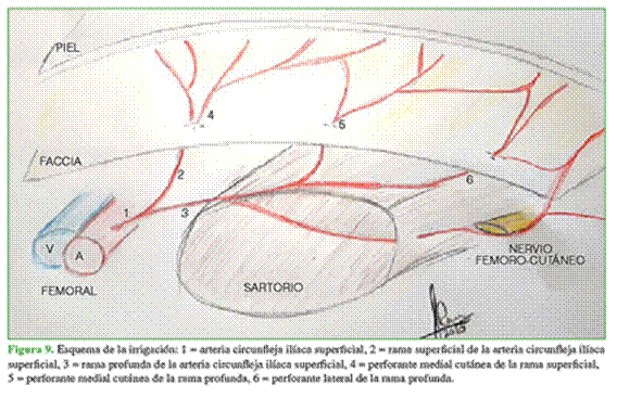 profunda de la ACIS para colgajos de dimensiones grandes (8 x 25 cm).8