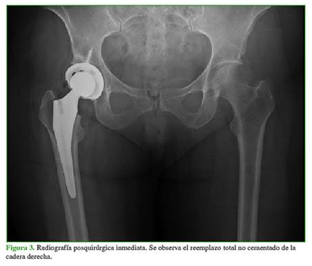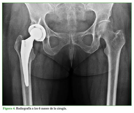 síntomas, se sometió a una artroplastia total de cadera derecha no cementada