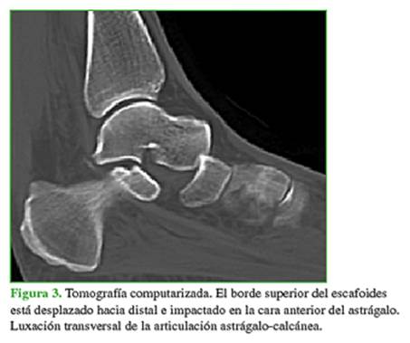 articulaciones astrágalo-escafoidea y astrágalo-calcánea (Figura 2). La tomografía computarizada no mostró