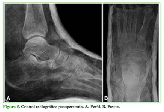yeso, y se tomaron radiografías de control posoperatorias (Figura 5).