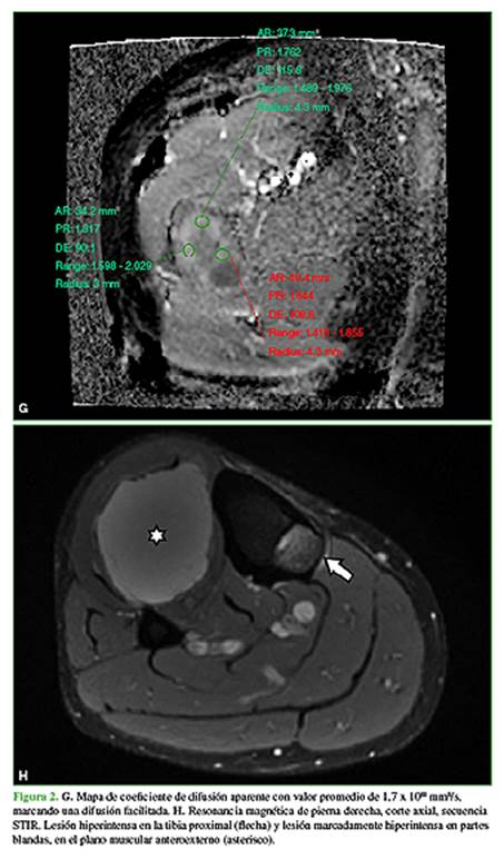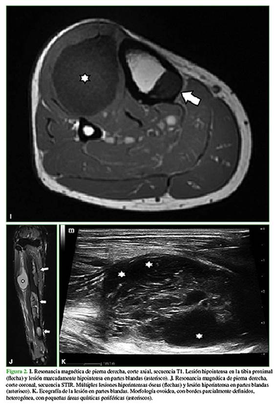 magnética de cadera y pierna, y una ecografía de la masa de partes blandas en