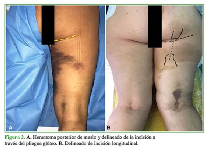 transversal sobre el pliegue glúteo. Reparación primaria con arpones del tendón
