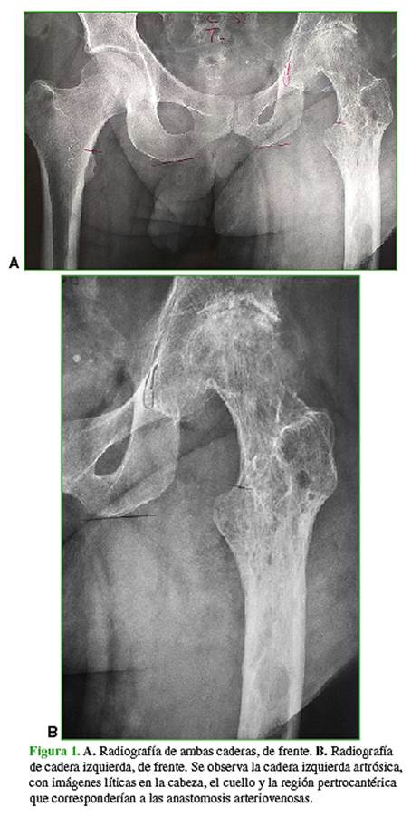 resonancia magnética (Figura 3), se observaban múltiples imágenes intraóseas correspondientes a fístulas arteriovenosas.