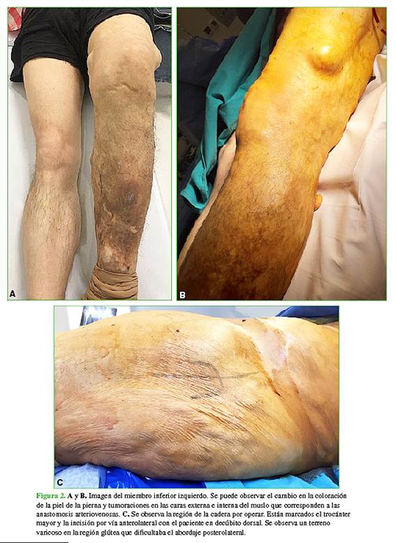 (Figura 2), pues no había formaciones varicosas ni anastomosis arteriovenosas detectables clínicamente ni en los estudios.