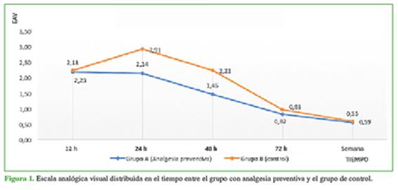 control no recibió analgesia. El dolor posoperatorio de los pacientes se evaluó