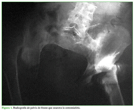 de una osteomielitis pélvica masiva que requirió la colocación de una talla
