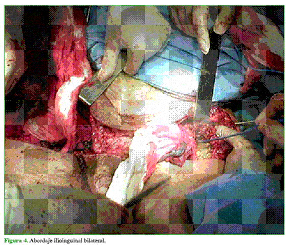 dorsal y un abordaje ilioinguinal bilateral ampliado a proximal con la