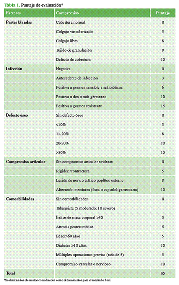 puntaje de riesgo prequirúrgico para secuelas postraumáticas de la pierna con