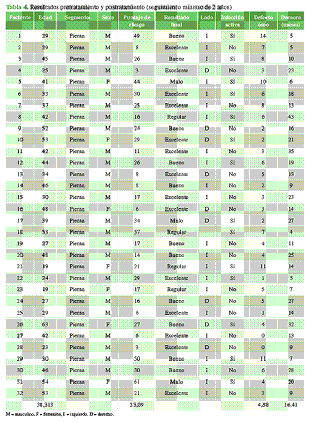 postraumáticas en la pierna con defectos óseos no articulares tratados mediante