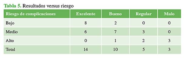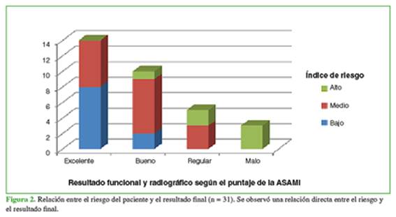 resultados funcionales y radiográficos pobres y malos, y no sería recomendable