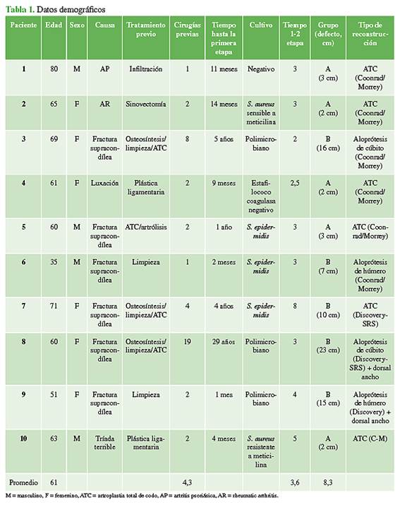 pacientes con un proceso infeccioso del codo, tratados en 2 etapas quirúrgicas:
