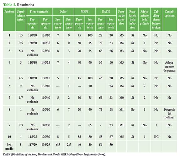 total de codo después de un proceso infeccioso. Cirugía en dos tiempos