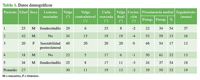y 8, respectivamente. La evaluación radiográfica preoperatoria arrojó un valgo