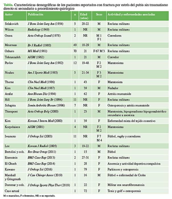 en una fractura por estrés del pubis. Reporte de un caso y revisión de la