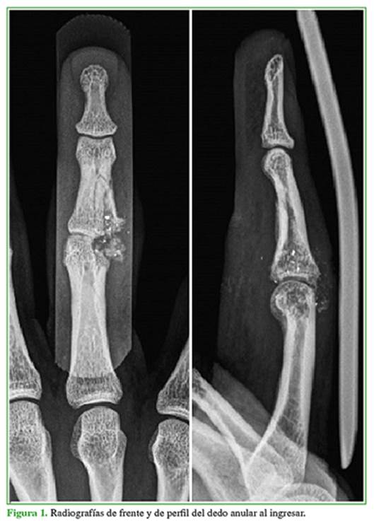 dedo anular de la mano derecha. En las radiografías, se observó un compromiso