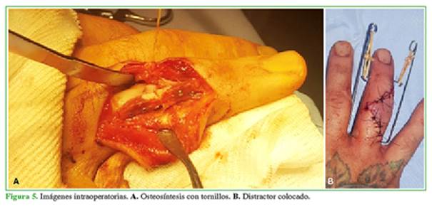 la fractura se extendía a la diáfisis de la segunda falange (Figura 1).