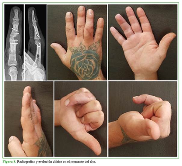 las 10 semanas posoperatorias, la flexión activa interfalángica era de 75° y la