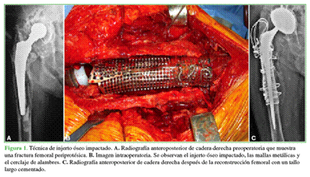 Palabras clave: Fractura femoral periprotésica B3; técnica de injerto óseo impactado;