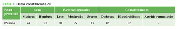 de 67 casos con síndrome del túnel carpiano e indicación de cirugía. Se