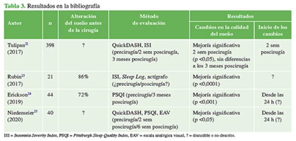 calidad del sueño antes de la cirugía. Se comprobó una mejoría significativa en