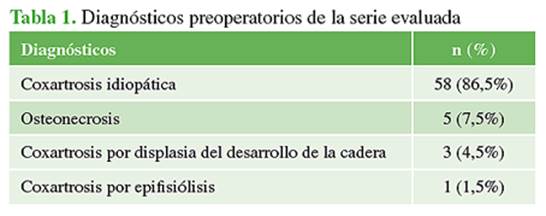 deseje fue del 32,3%, con mayoría de implantes en varo (73,3%). El Harris Hip Score tuvo un incremento