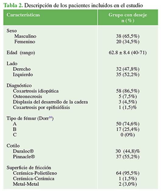 cementados con cobertura total de hidroxiapatita en deseje coronal y mostrar