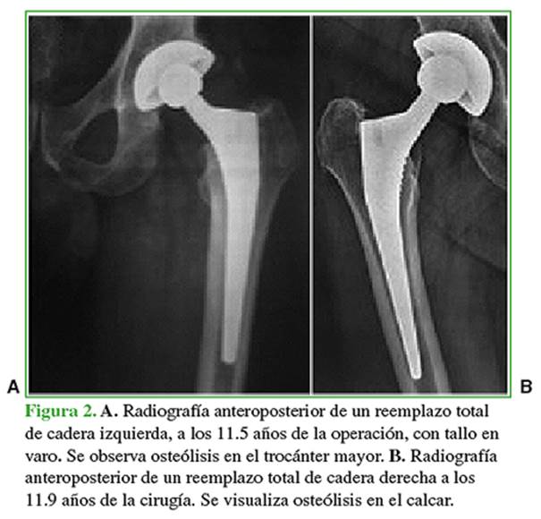 Se registraron datos, como osteointegración, hundimiento, osteólisis femoral