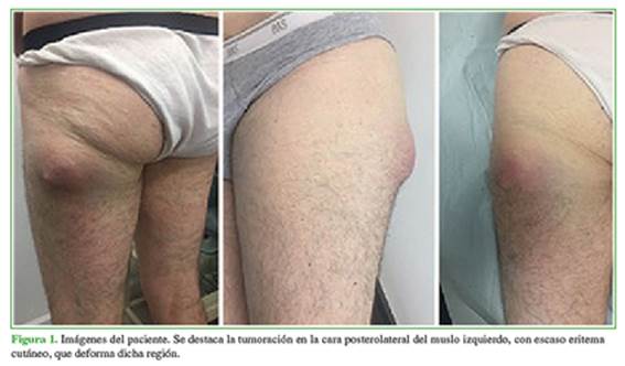 acudió con una tumoración en la región glútea y el muslo izquierdo de un año de