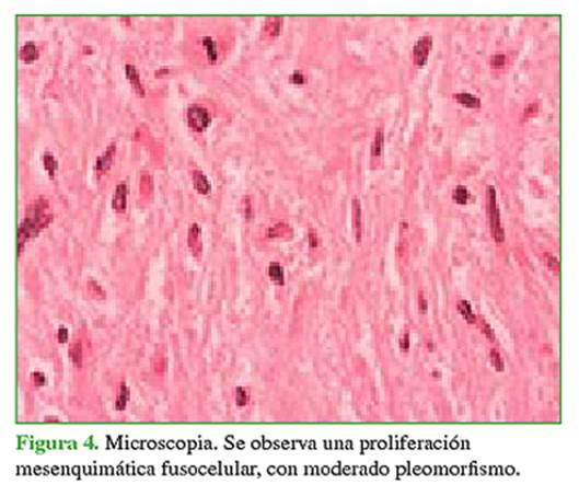 histológico reveló proliferación mesenquimática fusocelular, con moderado