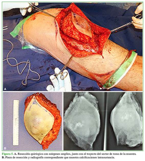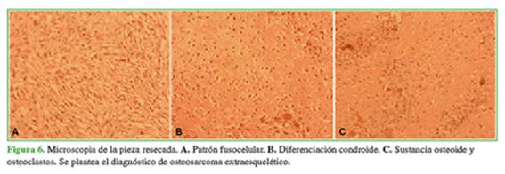 márgenes amplios. El estudio histológico de la pieza indicó osteosarcoma