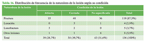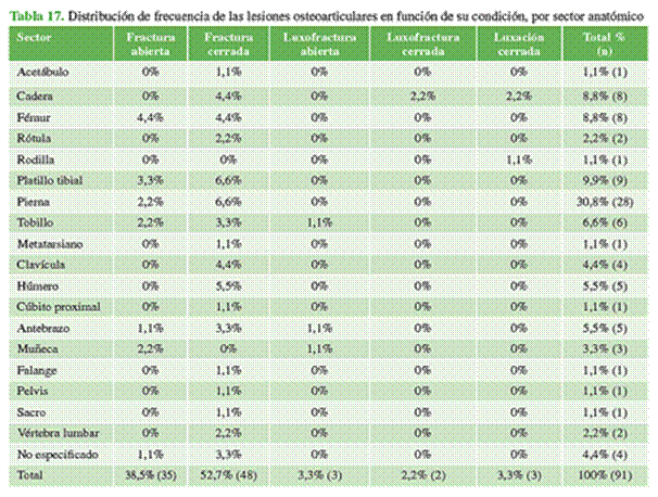 lesiones espinales, en la cabeza y en las extremidades fueron las principales
