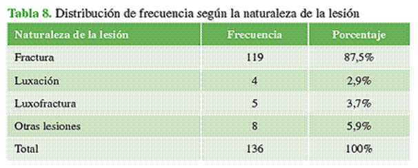 recopilados sobre las lesiones traumatológicas provocadas por accidentes de