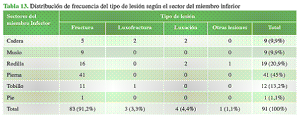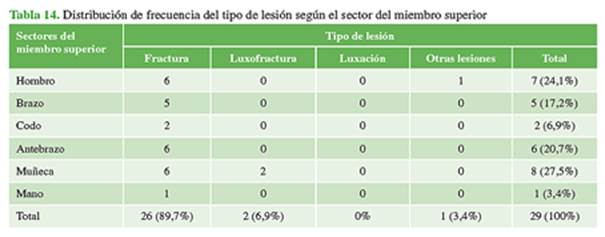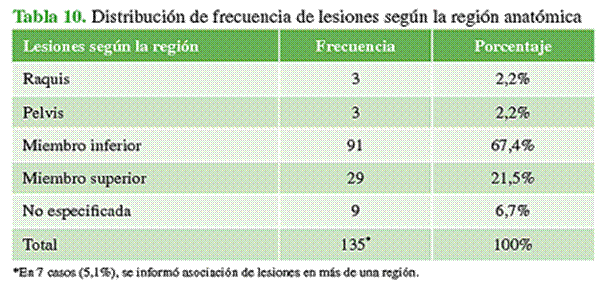 el sistema público de salud se concentraron en las extremidades (40,3%), y las