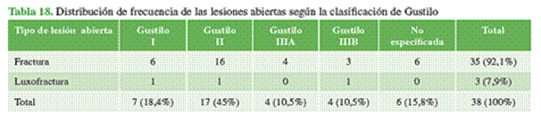 32 casos se especificó la clasificación de Gustilo (Tabla 18).