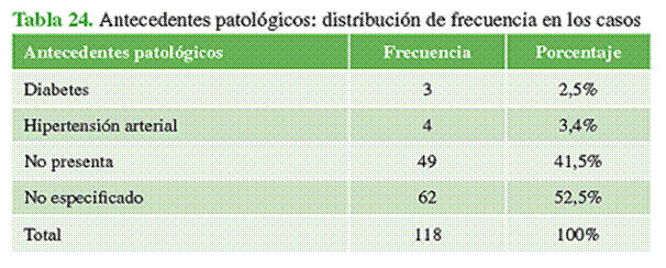 Antecedentes patológicos: ante la escasa recolección de datos, no pudimos