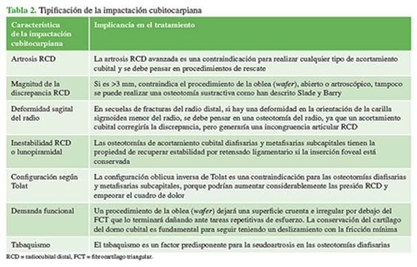 cubitocarpiana; cúbito plus; osteotomía; acortamiento; procedimiento tipo wafer.