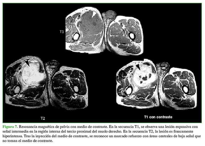 sarcomas de tejidos blandos, incluidos histiocitoma maligno o sarcoma sinovial. No hay un antecedente traumático (Figura 7).