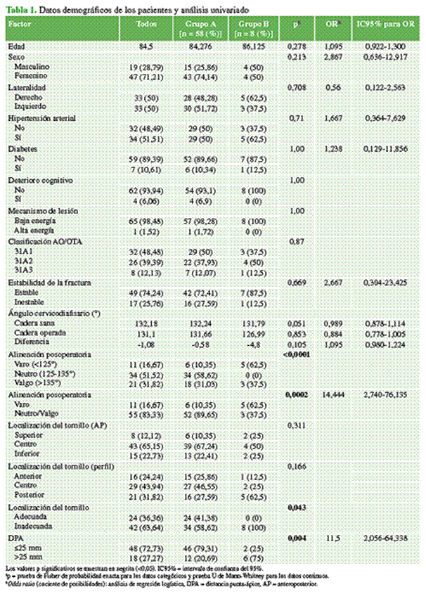 afectada). Los criterios de exclusión fueron: edad <75 años, fractura