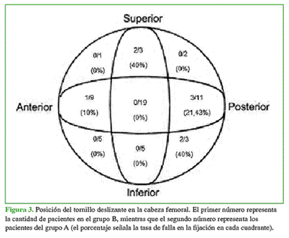 cabeza femoral,6 la reducción en varo o un punto de entrada muy lateral en el