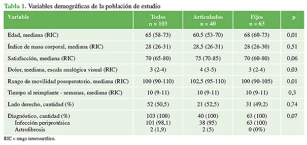 satisfacción, dolor y el tiempo hasta el reimplante. Las complicaciones fueron