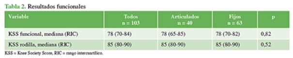 vs. 100; RIC 90-105, p 0,01). Según el KSS funcional y el KSS de rodilla, no