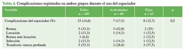 espaciadores; infección periprotésica; rango de movilidad articular.