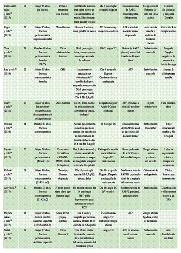 de la arteria femoral tras una fractura pertrocantérica de fémur. A propósito