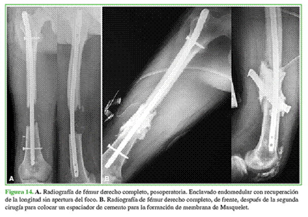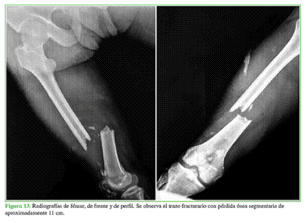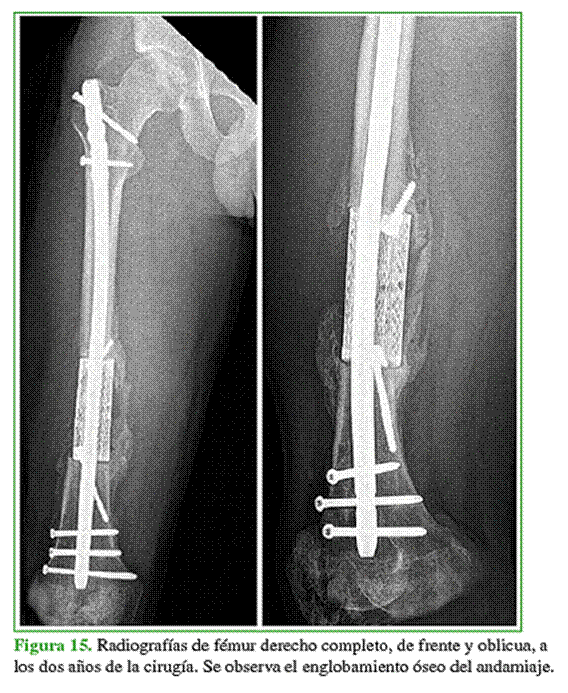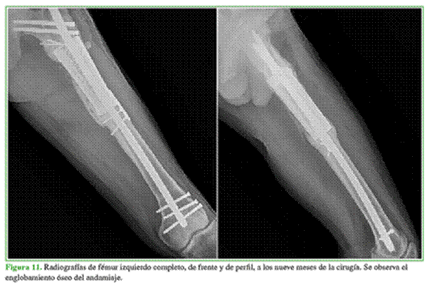 defectos de fémur diafisario, uno de tibia distal, y uno mediodiafisario de